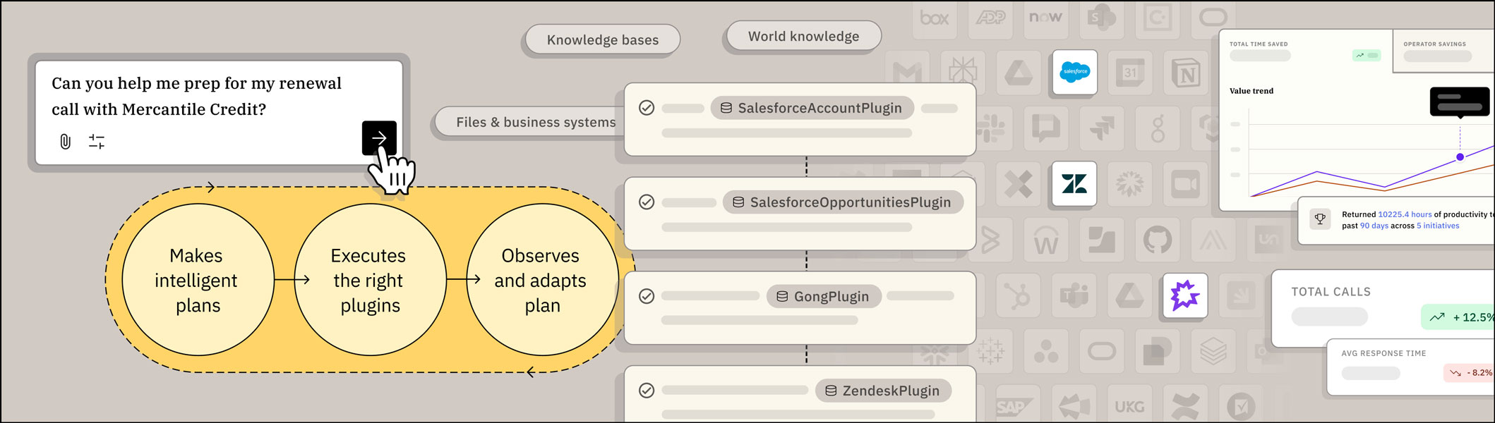 It allows the AI Assistant to identify overall employee goals and systematically determine the steps needed to achieve them, breaking down intricate issues into smaller components and executing each step sequentially by selecting various plugins, enabling comprehensive problem-solving across disparate enterprise systems in seconds.